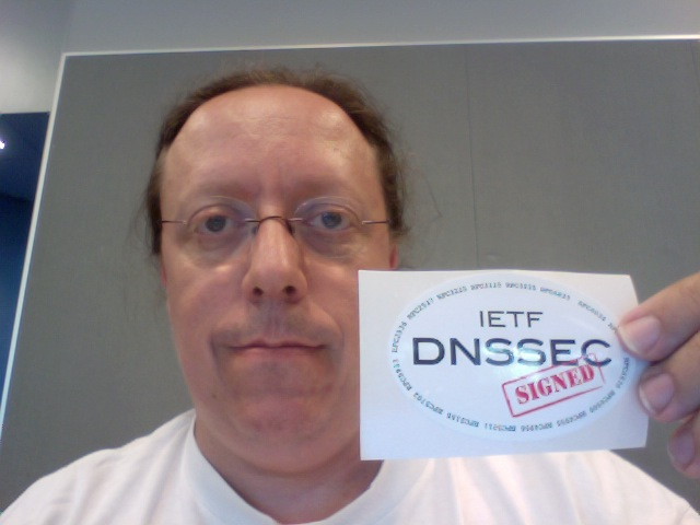 At the IETF-78 meeting in Maastricht, Netherlands, there was a celebration of the signing of the root zone. Champagne was served, and at while walking out of the plenary we also got cookies and a sticker.