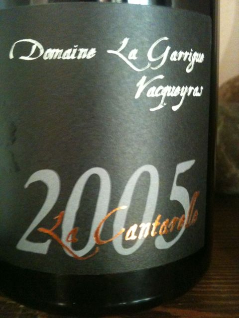 A very nice vacquerias. The prestige wine from La Garrigue. Thin, strict, as all vacquerias. Body ok, but not impressive. Grenache and not syrah dominated. Still tannins, so it could sit for a while more. But, it is expensive. Still much cheaper than for example chateauneuf-du-pape, but also not comparable (as good gigondas can). (+)