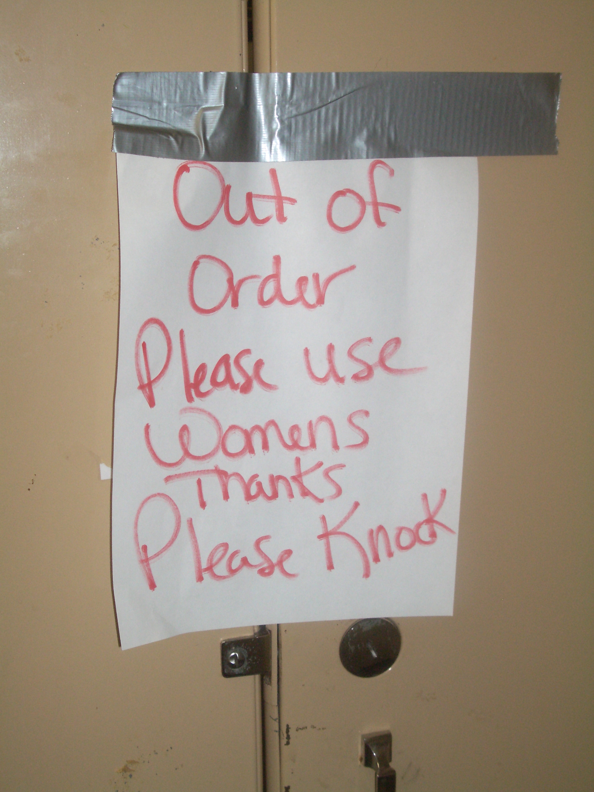 At Gazos Grill along highway one between Half Moon Bay and Santa Cruz, the mens toilet was broken, and one got this redirect to the womens…