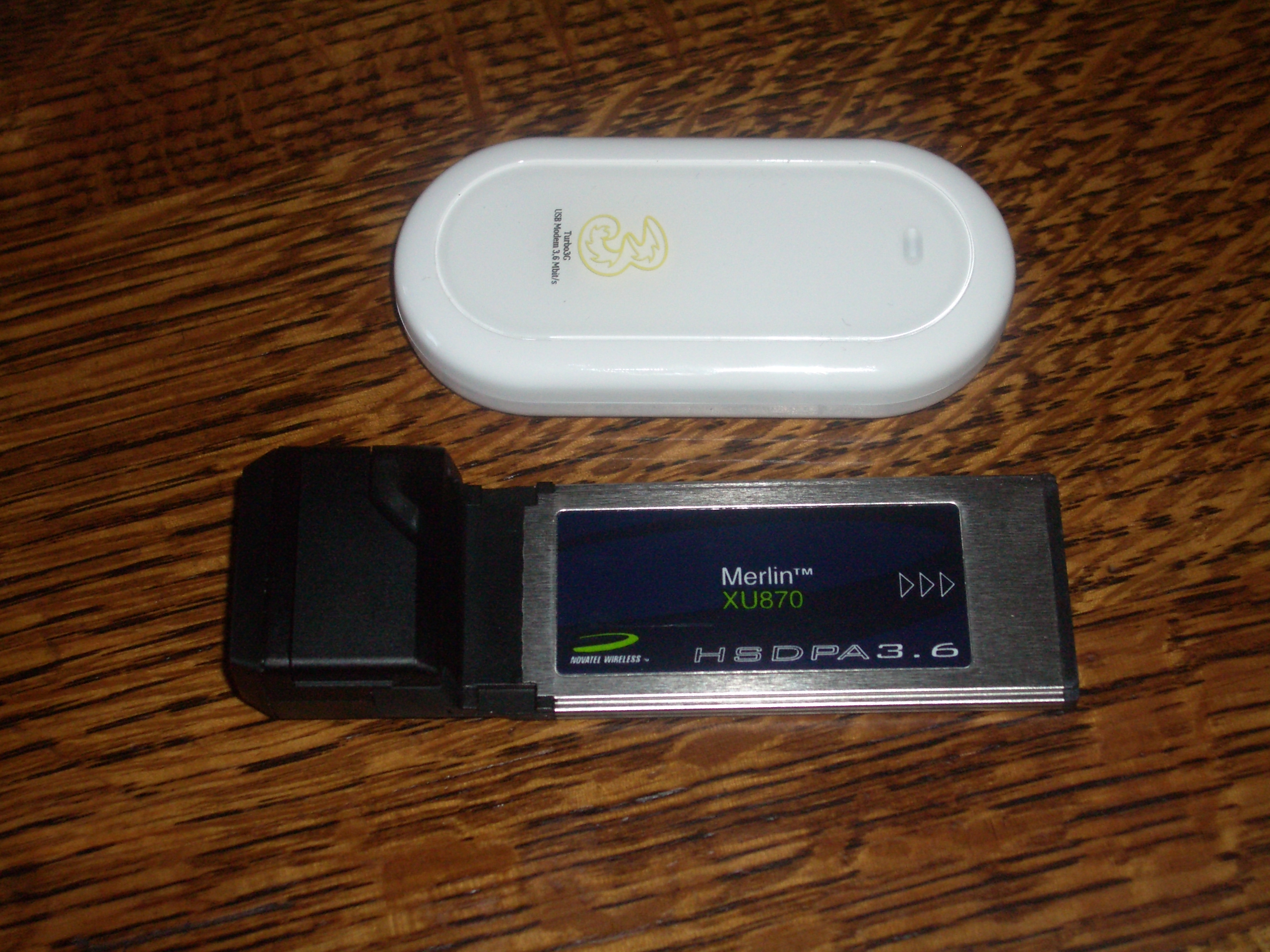 On this picture you can see the sizes of an Expresscard 34 and USB modem for 3G HSDPA. As you can see, the Expresscard 34 is larger. So I think I stick with my USB modem.