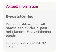 In an article in Aftonbladet it is described that the email service of the Incumbent Telia has crashed. This of course happens anyone that provide email services.