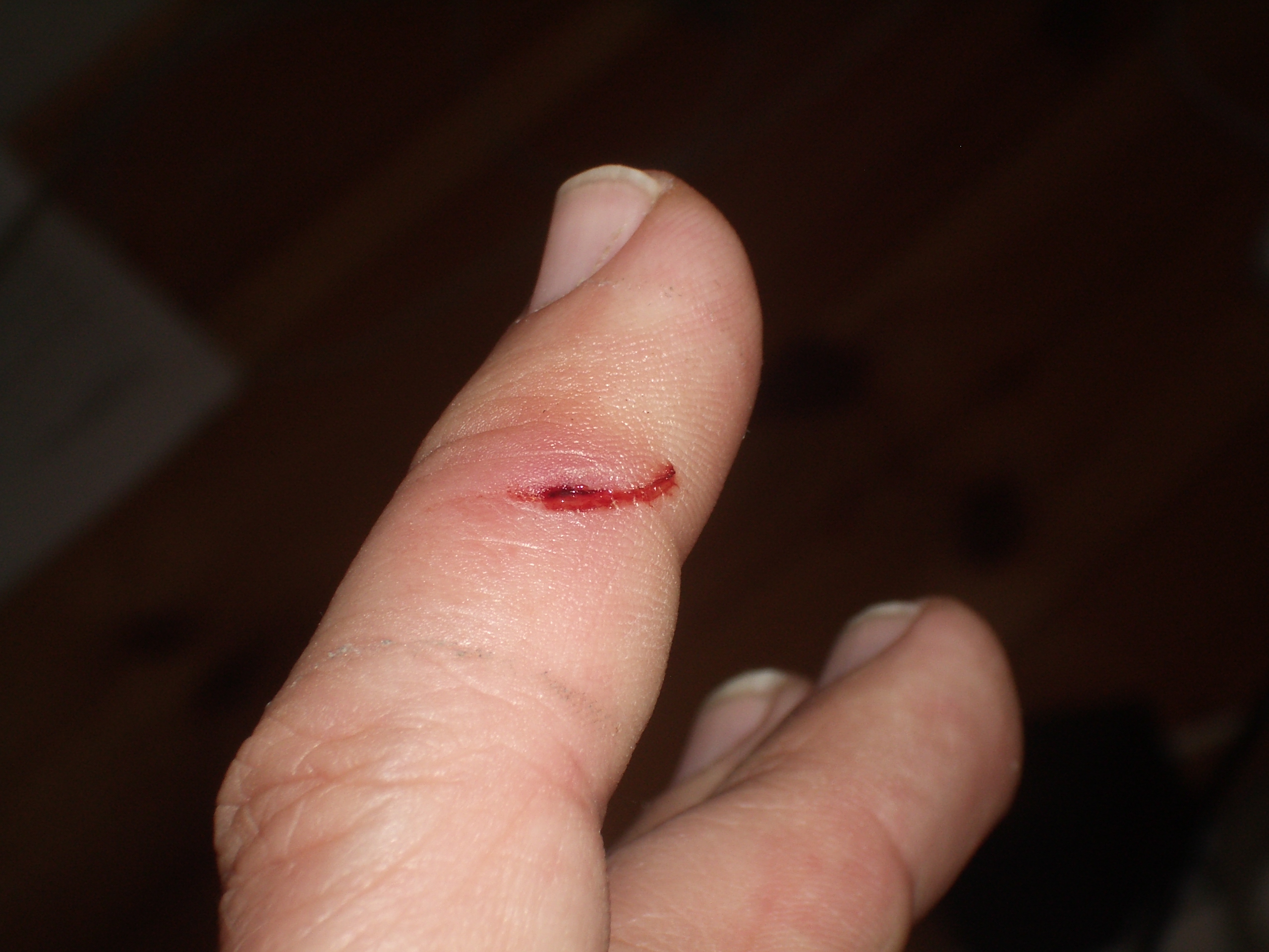 Last Saturday we got some 18kg of cod from a friends friend. On Sunday I cut the fish, but of course cut myself as well… I taped the finger, but this morning it started to hurt (again). When removing the tape, the cut opened, and that actually made things feel better again. I guess I had got some infection. Now I will try to keep the finger without any tape, although it will be hard to not open the cut again, and again and…