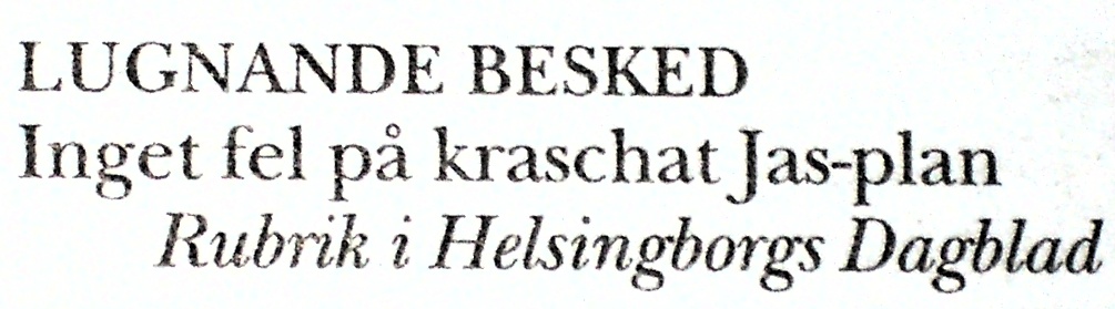 As a reader of Grönköpings Veckoblad I find it being somewhat an honor to succeed to write something that is quoted in it. In the latest edition (May), I found this quote from Helsingsborgs Dagblad. Congratulations Joakim.