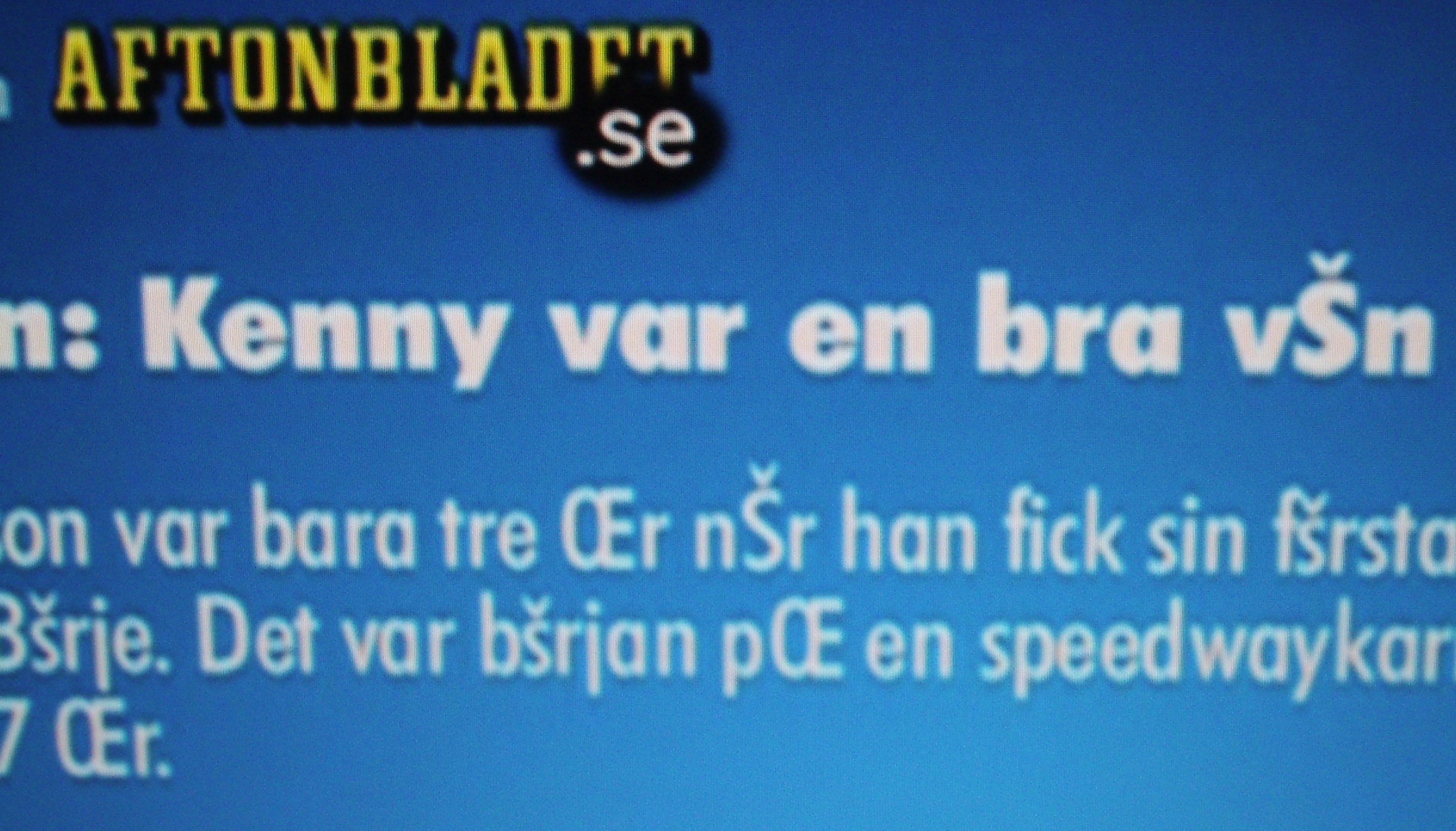 I know some people that claim the problems are over regarding character representation on computers. The view is that everything handle The Unicode Character Set correctly. Yes, many things do, but still one find interesting situations like this. This is a photo of my TV, what it displayed when watching the TV channel connected to Aftonbladet.