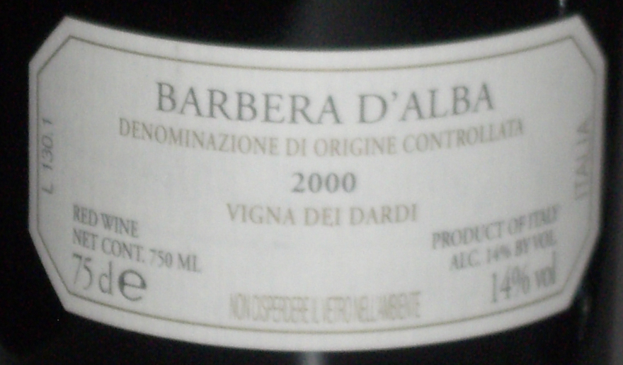 This wine was absolutely excellent. At the peak. A month later and it would have been dead. Almost no tannins, and taste was typical for the Barbera d’Alba. If you have some 2000, drink them now!