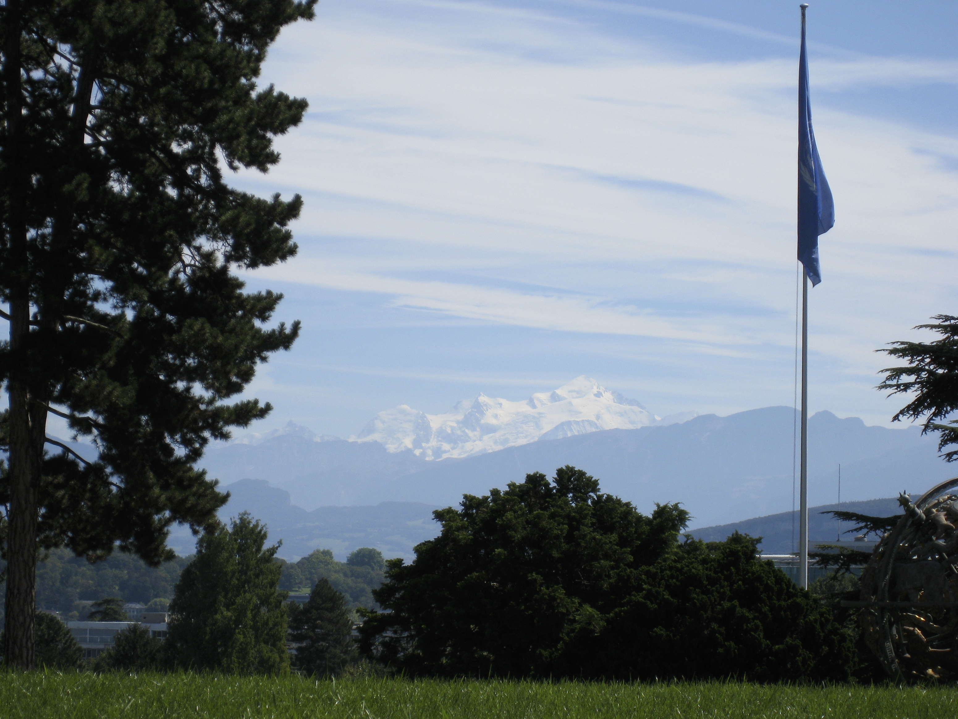 For once there where not many clouds over the alps in Geneva. It is not often one can see Mont Blanc from the lunch area outside the UN building. Wednesday last week was one of those rare days.