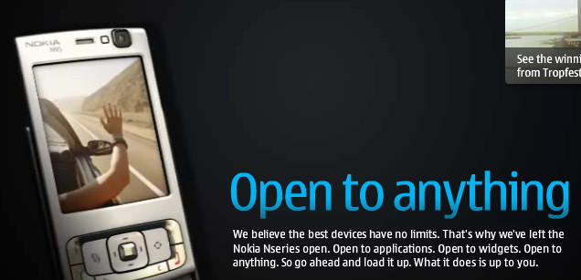 I presume the campaign Nokia has launched at http://nseries.com/open tell people that their N-Series phones are not locked, while the iPhone is. Kind of interesting campaign that I think more point out the difference between how cellphones are sold in the US and in Europe. Many US sales tricks like locking a phone to a provider are more popular in Europe when tying to 3G than traditional GSM. SIM-lock exist all over the place of course, but prohibition of installing software?