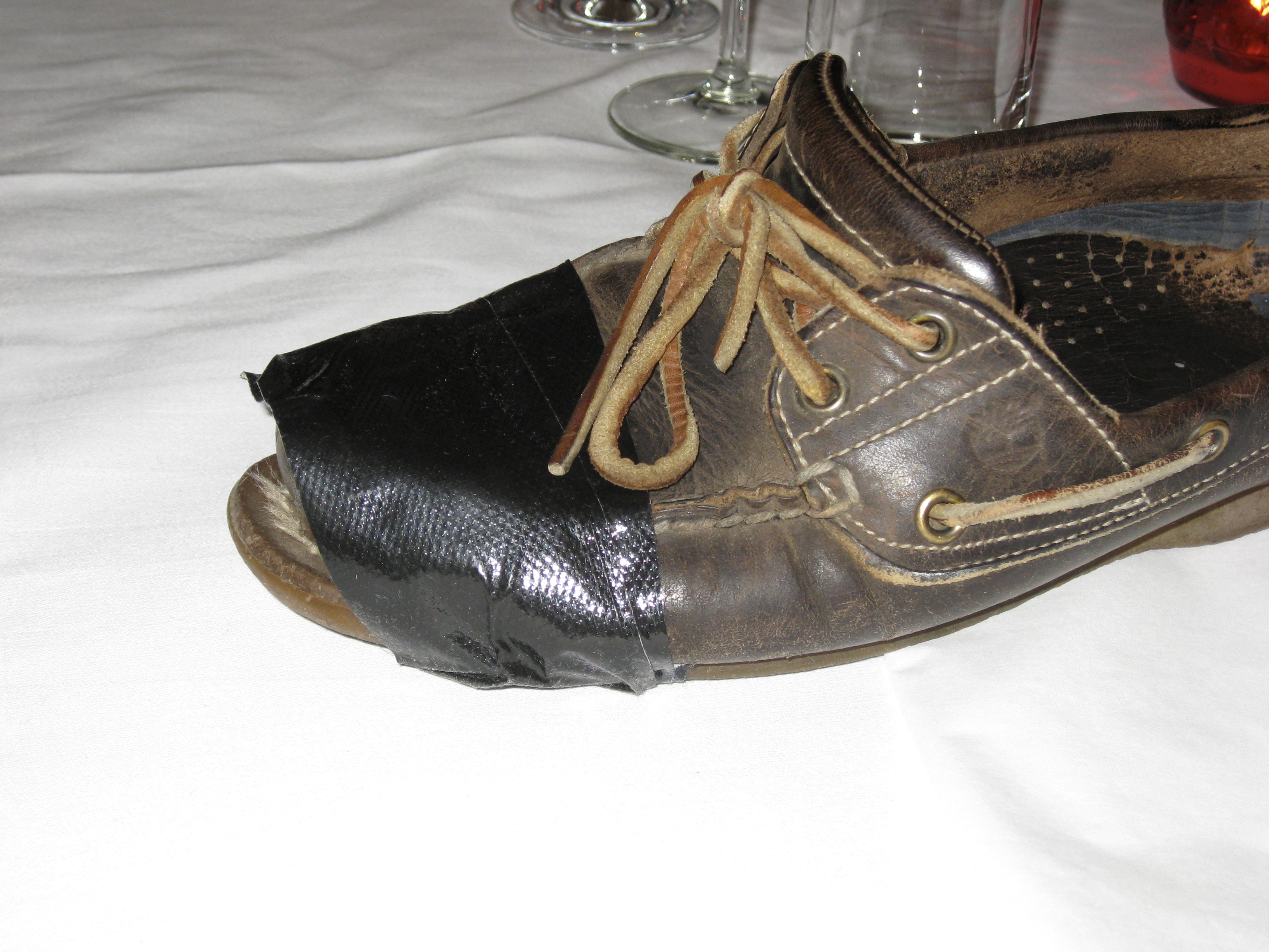 I got some problems with my left shoe…luckily, I could patch it, as stores here in Amsterdam only had size 8 and larger…