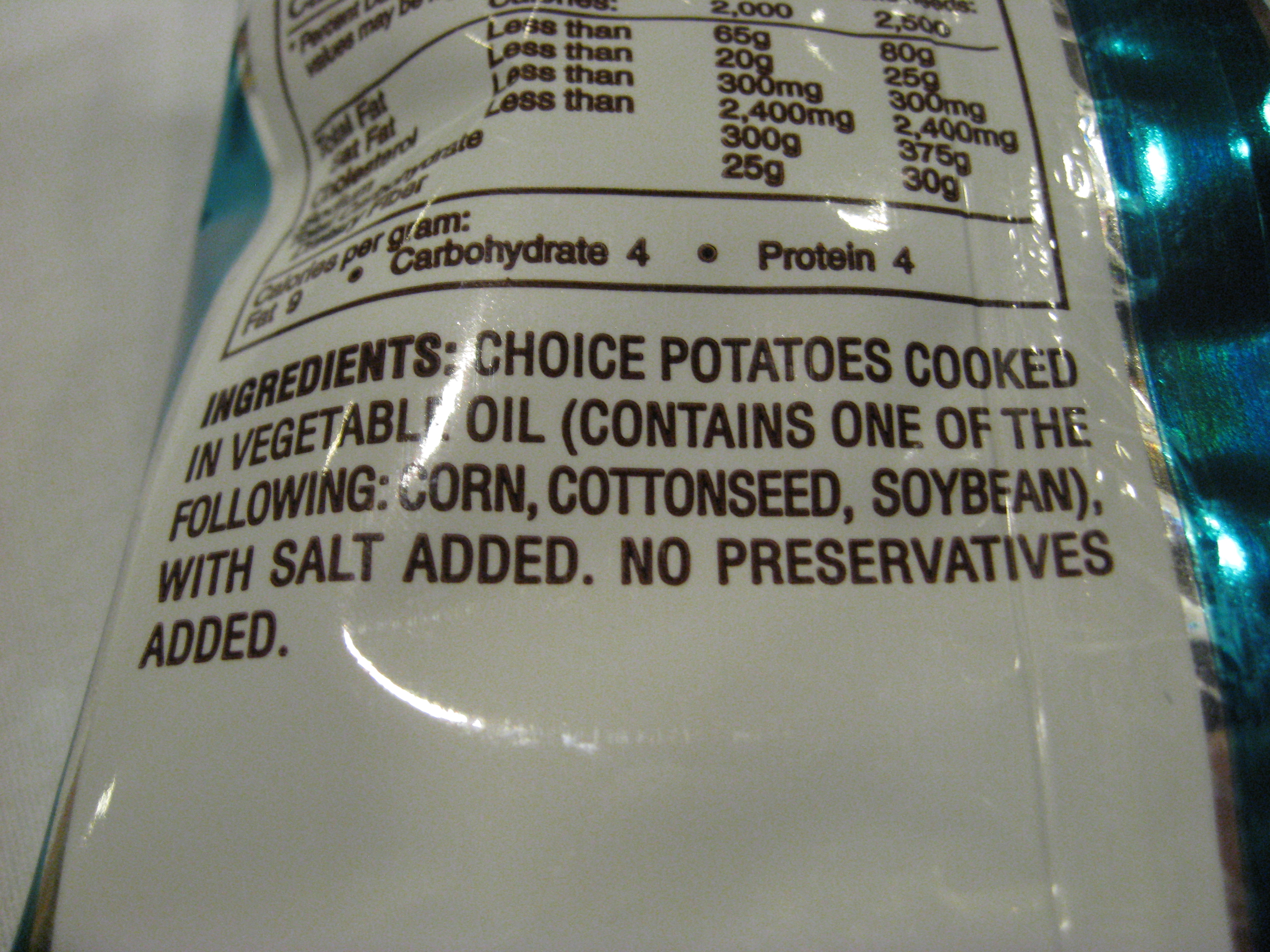 At a meeting in Philadelphia, I found this bag of potato chips. It has, as you can see, chips made from real potatoes in it.