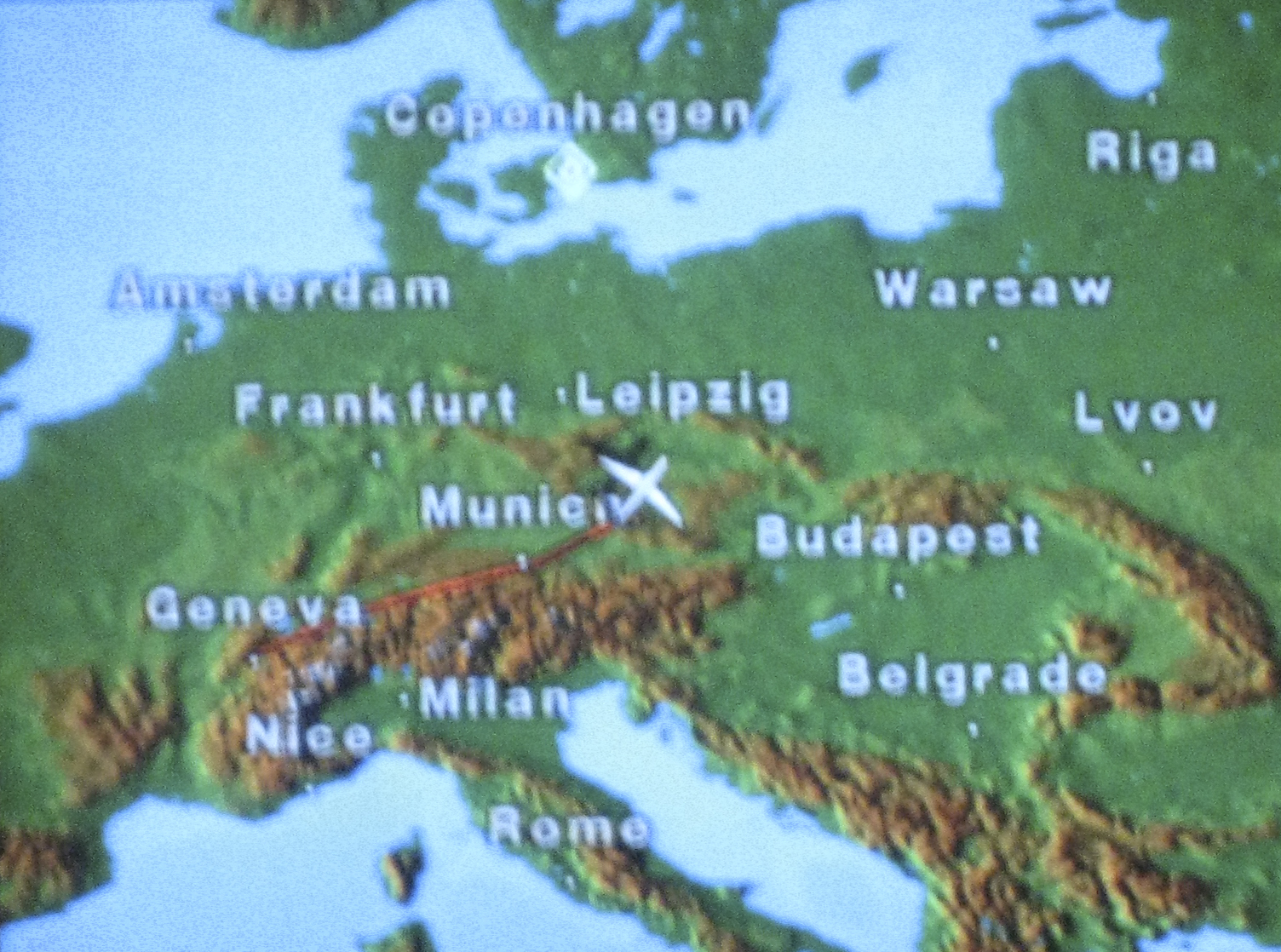 The pilot after about 40 minutes told us the story. We had not got a better slot time. Instead we where pushed to a slot time at 23:45. SAS then decided to ignore .DE completely and instead fly over airspace of .PL. This of course made the flight time 2:10 instead of the planned 1:25. On top of this, we had to try to ignore .FR due to the strike there. We passed Zurich, Munich, Prague and the western part of Poland. Then Swedish airspace until we arrived to CPH from the east. Of course landing at CPH was from the west. It seems to me that at CPH one always have to do a 180 degree turn before landing. Sigh.