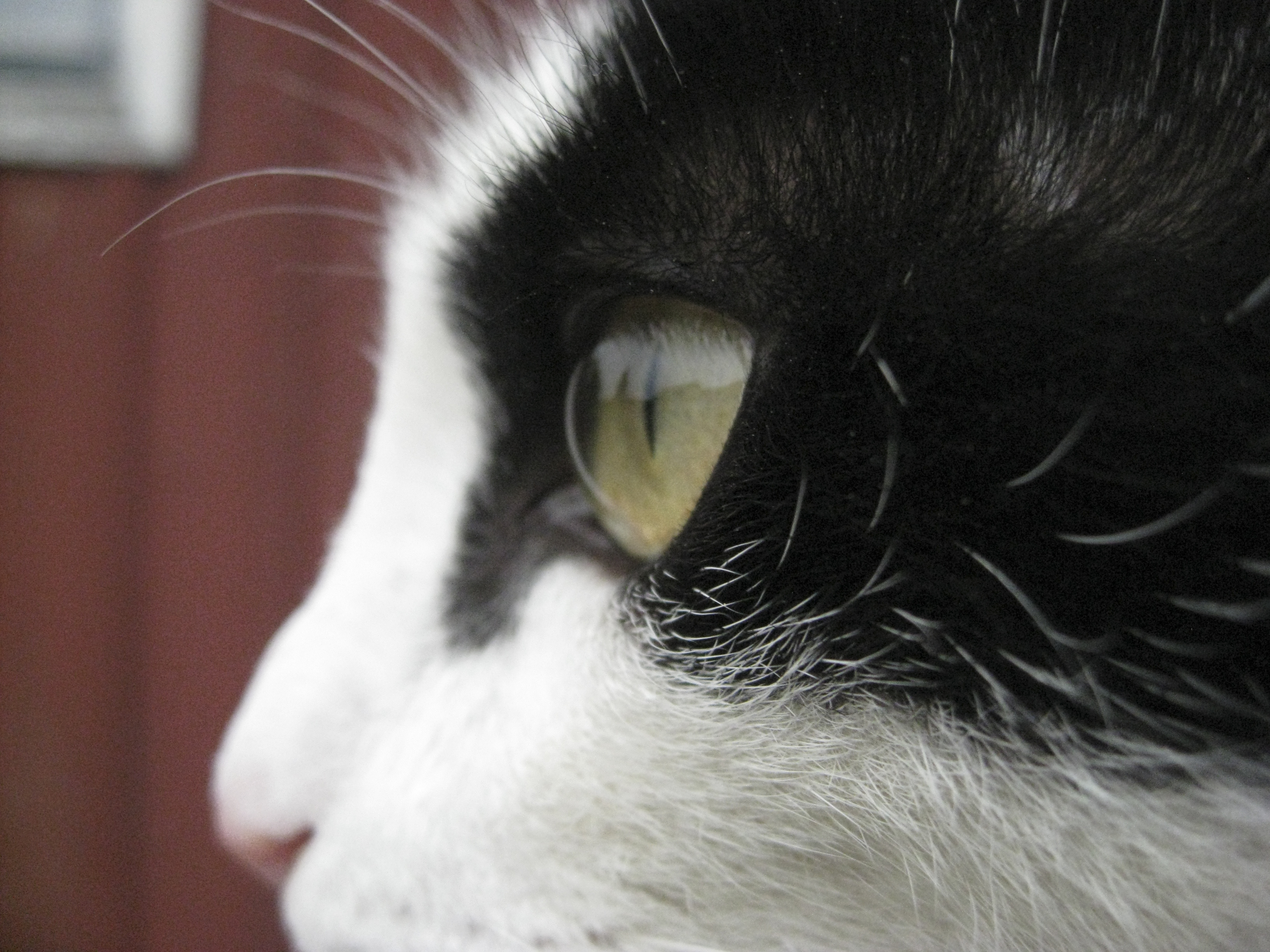 Yesterday I managed to take a close up photo of an eye of Spetsnos, one of our cats. The camera is in this case about one inch from the eye, and it took almost five minutes before I managed to get the cat to look at something else than the camera. In this case a package of chocolate(!).